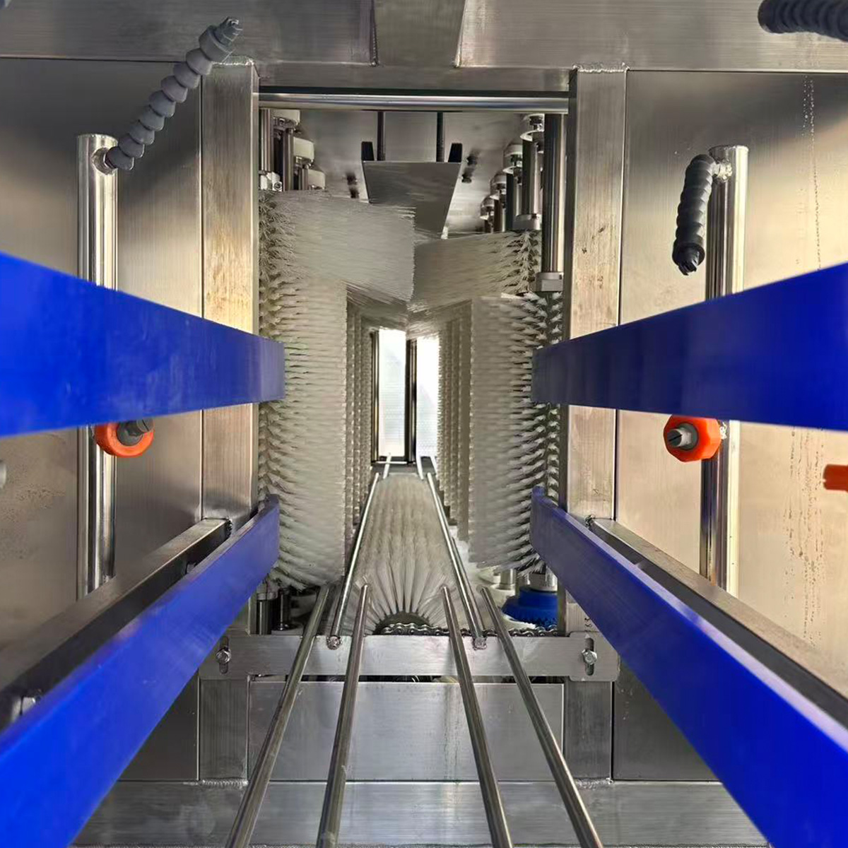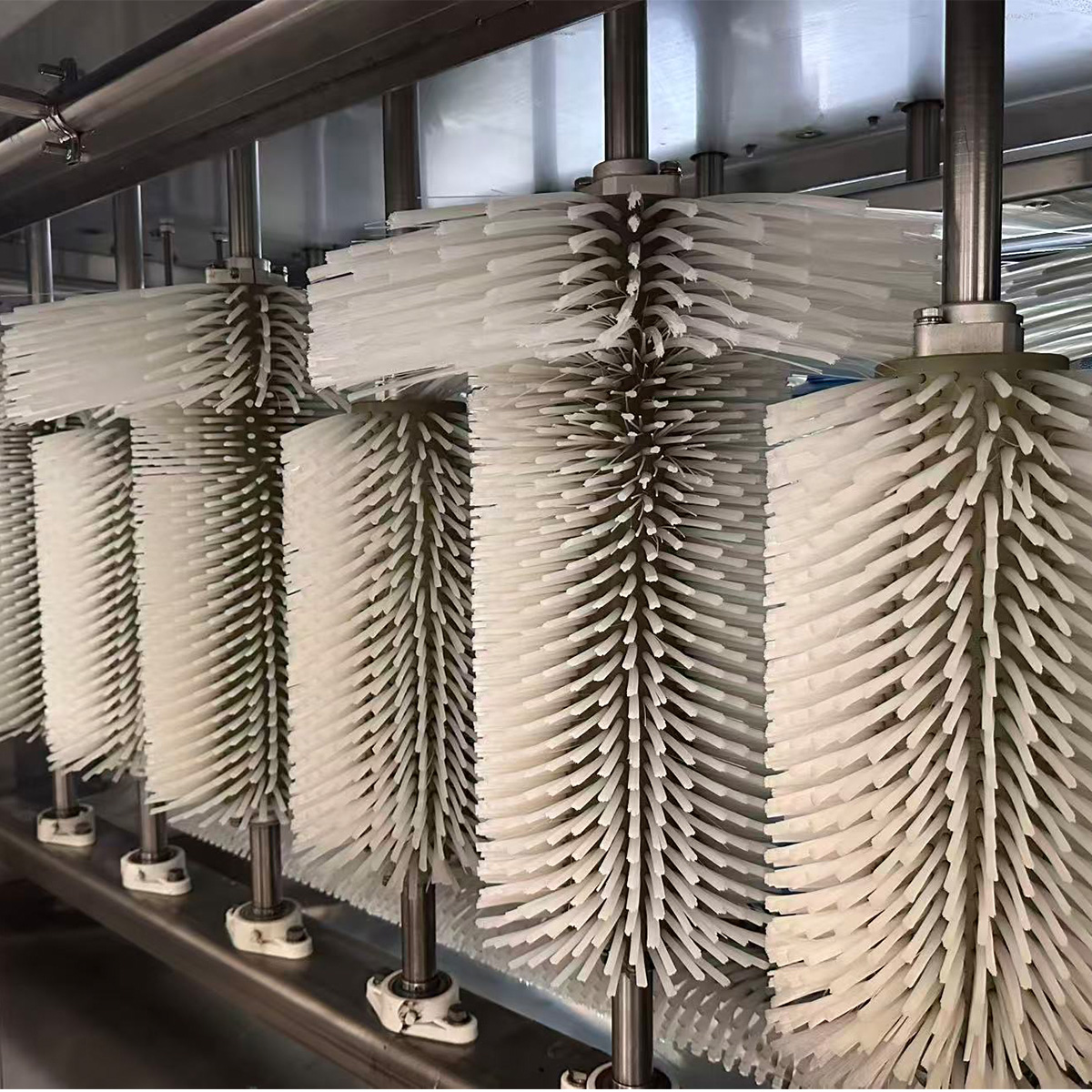 • The main brush structure consists of 8 cylindrical side brushes, 1 cylindrical bottom brush, and contour brushes, enabling 360-degree brushing of the bottle's outer surface (including the shoulder and mouth), ensuring the empty bottle rotates at least 1080 degrees during the external washing process.