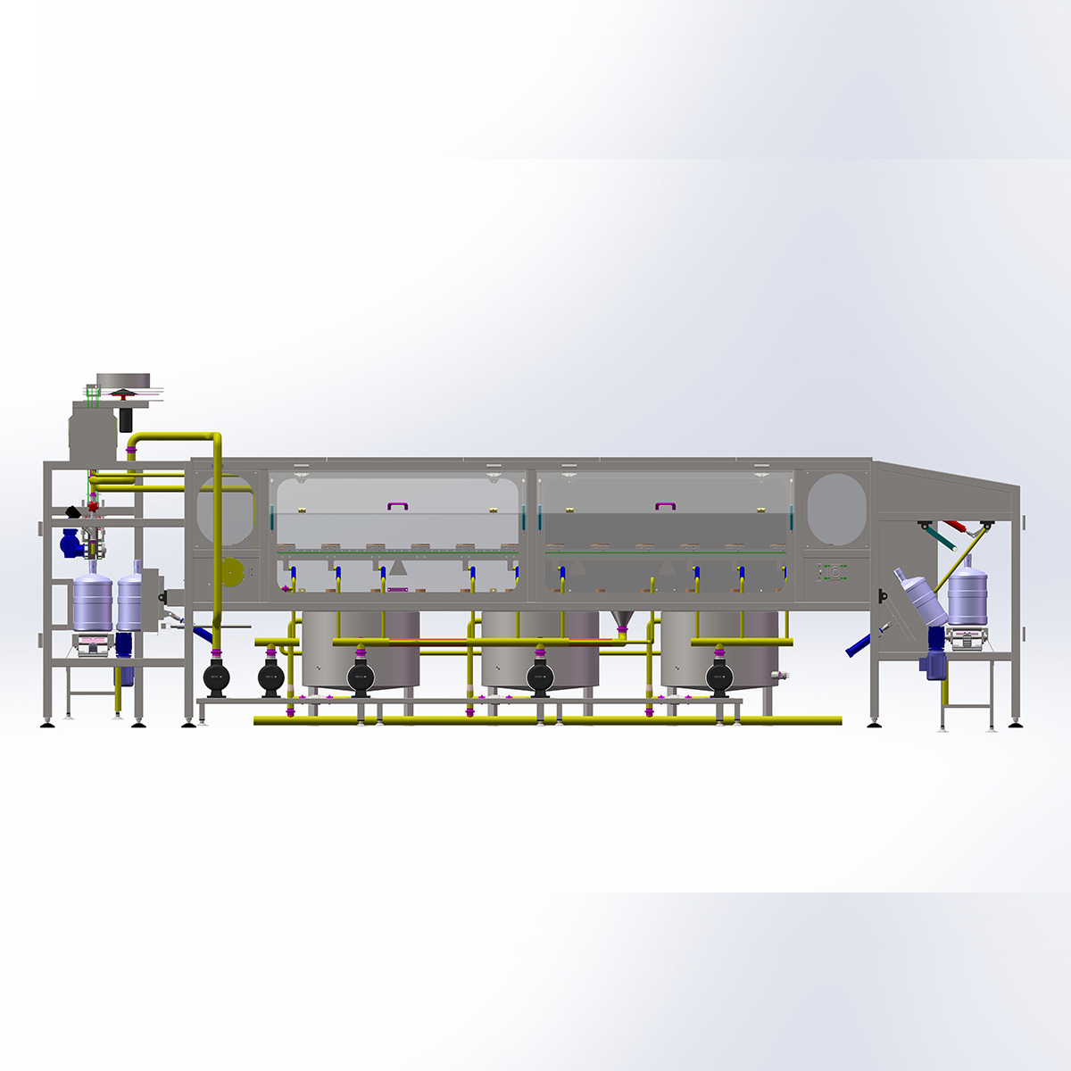 • The alkaline washing and ozone rinsing processes are equipped with exhaust port flanges for connecting exhaust pipes.